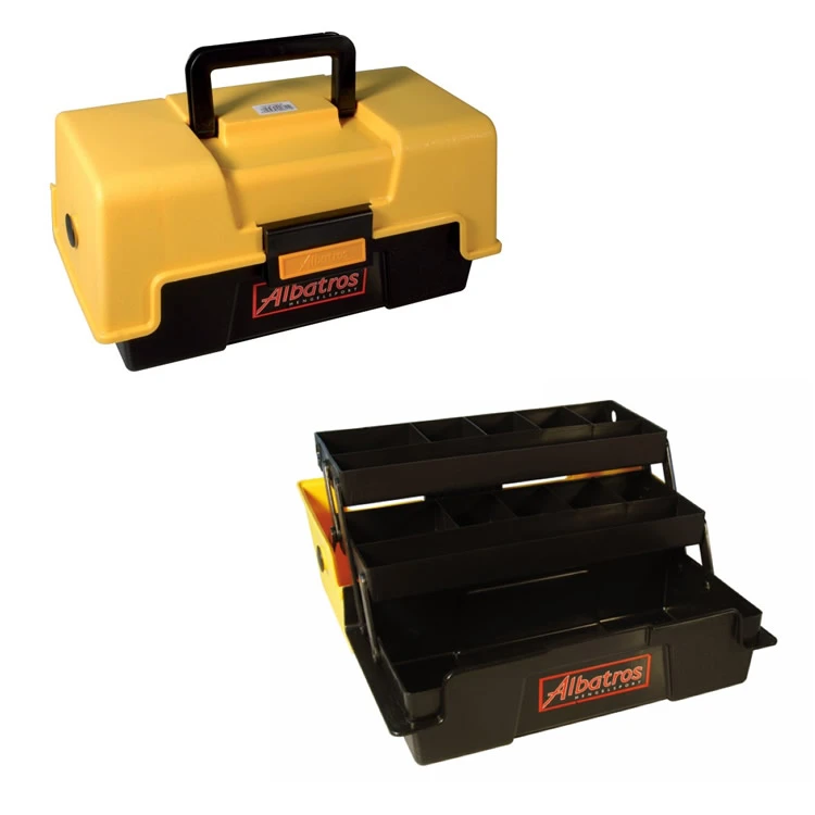 Al jaren bestsellers! De Albatros viskoffers zijn bekend bij jong en oud. Deze koffers bevatten een spatwaterdicht afsluitende deksel, ingebouwde ladesteunen, automatisch openende ladesysteem, royale opbergruimte, geen metalen delen dus geheel roestvrij en een zeer prettig in de hand liggend handvat. Voorzien van moderne frisse kleuren. Kortom, alles om uw materiaal schoon, droog en georganiseerd naar de waterkant te vervoeren.