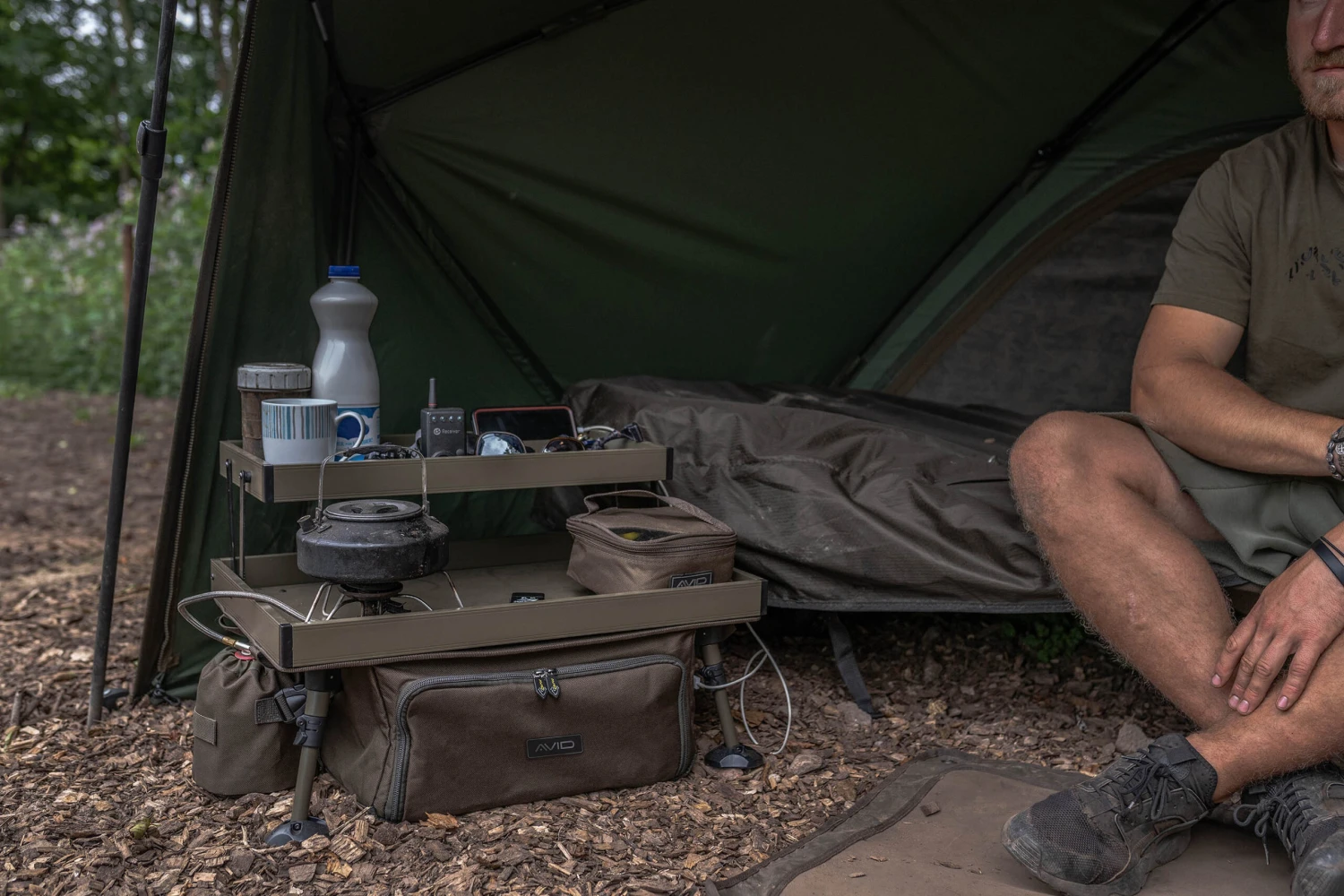 De Double Decker Bivvy Organiser is uitgevoerd met twee laden zodat je zoveel mogelijk essentiële items op te kunnen slaan. De tas van de Organiser kan in de onderste compartimenten kleinere onderdelen van je uitrusting bevatten. Wanneer je op zoek bent naar een allesomvattende opslag van je materialen en een ’thuis’ voor je essentiële zaken, dan hoef je niet meer verder te kijken. Het onderste compartiment van de Organiser bevat twee USB-aansluitingen, wat betekent dat je nu je waardevolle powerbanks op kunt slaan in de binnenkant van de onderste tas, zodat ze niet in de weg liggen; daarbij ben je nog steeds in staat om de instrumenten bovenop de tafel op te laden. De onderste tas is ook perfect voor het opslaan van grotere items voor het koken en het zetten van thee of koffie. De Double Decker Bivvy Organiser wordt ook geleverd met een tas voor een gasstel dat aan beide kanten van de onderste tas vastgezet kan worden.