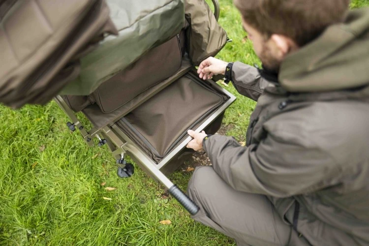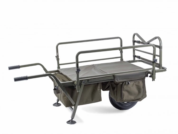 Verder zijn er in deze barrow 3 tassen bevestigd, 2 aan beide zijkanten van het wiel, hier kunnen makkelijk spullen in en uitgehaald worden door de opening aan de zijkanten. Ook zorgt dit weer voor meer balans in de barrow. Dan zit er nog een tas in het midden van de barrow. Deze kan via een schuifsysteem naar achter gehaald worden en zodoende makkelijk bereikbaar.