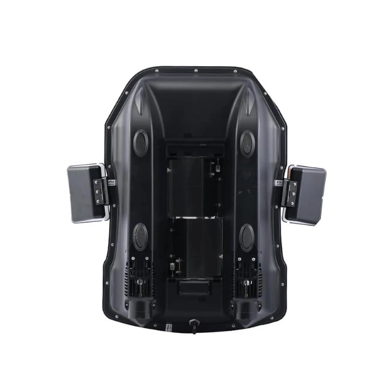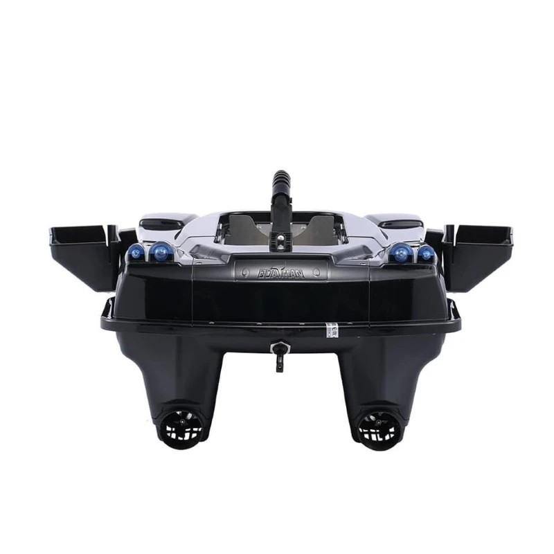 Boatman nieuwe Leader Pro Series is een complete voerboot voorzien van de nieuwste technieken. Hij bezit 4 voerbaken. Twee in het midden met een inhoud van ieder 1500 gr die automatisch openen en sluiten. Twee zijbakken die ieder 500 gr extra voer kunnen droppen. Deze kunnen allemaal afzonderlijk bediend worden. Aan de voorzijde heeft de Leader 2 koplampen voor een optimaal zicht deze zijn met de afstand te bedienen. Aan beide zijkanten is d.m.v. een het openen van de klep snel bij de accu om deze (na +/- 3.5 uur varen met een max snelheid van 80 m/min) kunt verwisselen. Deze is ook voorzien van een lamp en kan met de bijgeleverde usb stekker ook gebruikt worden als later voor afstandsbediening of uw telefoon. Dit alles wordt geleverd in een stevige trolley waarmee u de boot makkelijk mee naar de waterkant brengt.