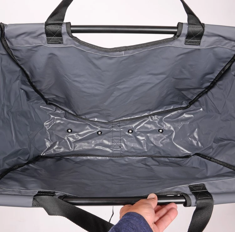 Deze zeer robuuste weegzakken zijn gemaakt van visvriendelijk plastic gecoat materiaal. De 2 stevige, ronde buizen met ruime handvaten maken het bevestigen aan een weeghaak eenvoudig en stabiel. De lekgaten zorgen voor afvoer van overtollig water. Dankzij de brede vormgeving kunnen zowel ronde als vierkante netten comfortabel in deze weegzakken geleegd worden. Aan de bodem is een afneembare band bevestigd voor de veilig terug zetten vanaf een hogere kant. Ook kunnen deze weegzakken gebruikt worden om de vangst te wegen inclusief bewaarnet.