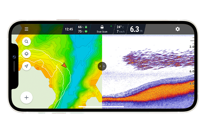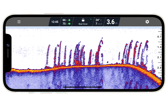 Sonarmodi: Standaard, Boot, IJsvissen, Onshore GPS