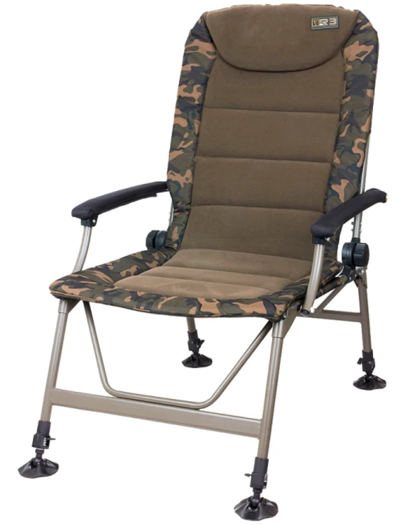 In navolging van het grote succes van de R Series Camo bedchairs zijn we overspoeld met verzoeken voor een bijpassende serie stoelen. De R Series Chairs bestaat uit drie stoelen. De kleinste en laagste is de R1 en de grootste en hoogste is de R3. Van de R1 naar de R3 wordt de stoel groter en neemt de hoeveelheid features toe.