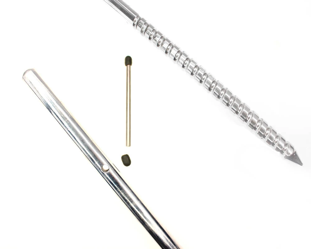 De onderkant is voorzien van schroefdraad om deze met bijgeleverd handle makkelijker in stevige grond te draaien.