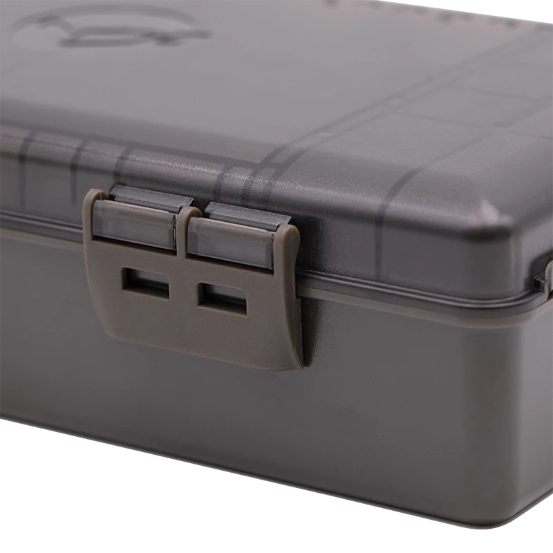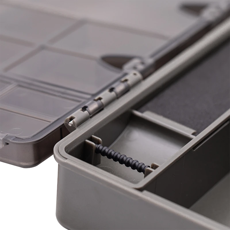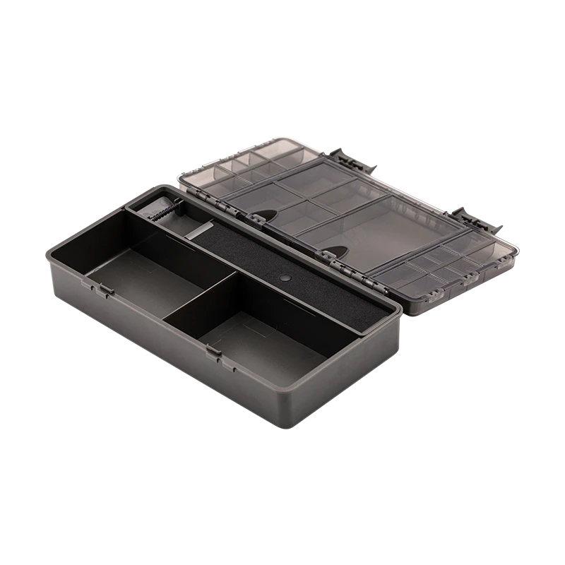 In de doos bevinden zich twee grote compartimenten, met vaste verdelers, die perfect zijn voor rig-tools, hooklink-spoelen en dergelijke. Het beschikt ook over een verwijderbare rig-lade, compleet met pinnen, die kan worden gebruikt om maximaal acht voorgeknoopte rigs op te bergen (zoals de BASIX Ready Tied Hair Rigs), en daaronder is nog een lang opbergvak.