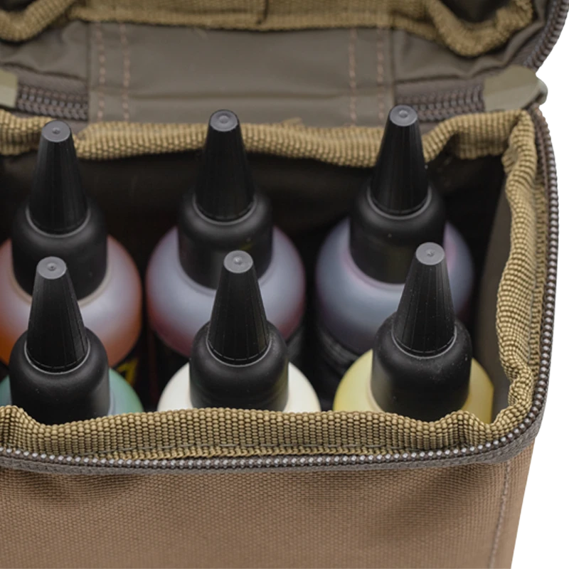 Goo kan ongelooflijk effectief zijn, vooral wanneer je speelt met verschillende kleur- en smaakcombinaties, de Compac Goo Bag is er de ideale opbergoplossing voor. De Goo Bag heeft een verwijderbaar inzetstuk dat ontworpen is om al uw flessen Goo veilig op hun plaats te houden en om morsen of beschadiging van de flessen te voorkomen – het kleine formaat biedt plaats aan zes flessen en het grote aan twaalf. De voering is schoon te vegen en de tassen zijn voldoende gevoerd om uw Goo te beschermen, met dezelfde duurzame, waterbestendige buitenstof als de rest van ons Compac-assortiment. Beide tassen hebben een verstevigd handvat en heavy duty ritsen.