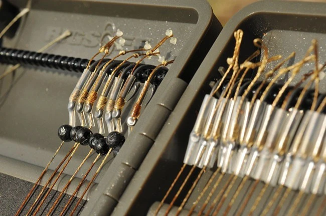 Wordt geleverd met 30 standaard pins en 15 “double pins” die het mogelijk maken om rigs op te bergen zonder een lus of wartel te bevestigen.