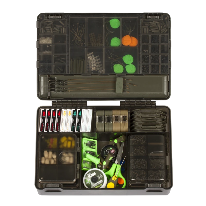 Verspreid door de Tackle Box tref je 29 compartimenten aan die ruimte bieden aan allerlei end tackle items. Daarnaast tref je een magnetische rig board aan die ruimte biedt aan onderlijnen. Ook is de layout van de box verstelbaar met tussenschotten die je naar wens kan verplaatsen. Om het af te maken is de box zo gemaakt dat hij perfect ruimte biedt aan de nieuwere vierkante spoeltjes onderlijn materiaal, de Kamakura haak doosjes en de nieuwe Leader Safe en Mini Compartment Boxes.