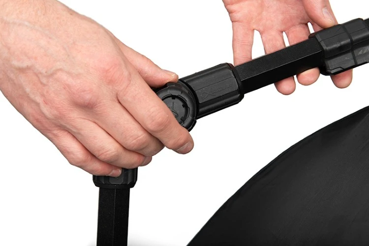 Arm kan vastgezet worden in verschillende hoeken om de brolly te fixeren
