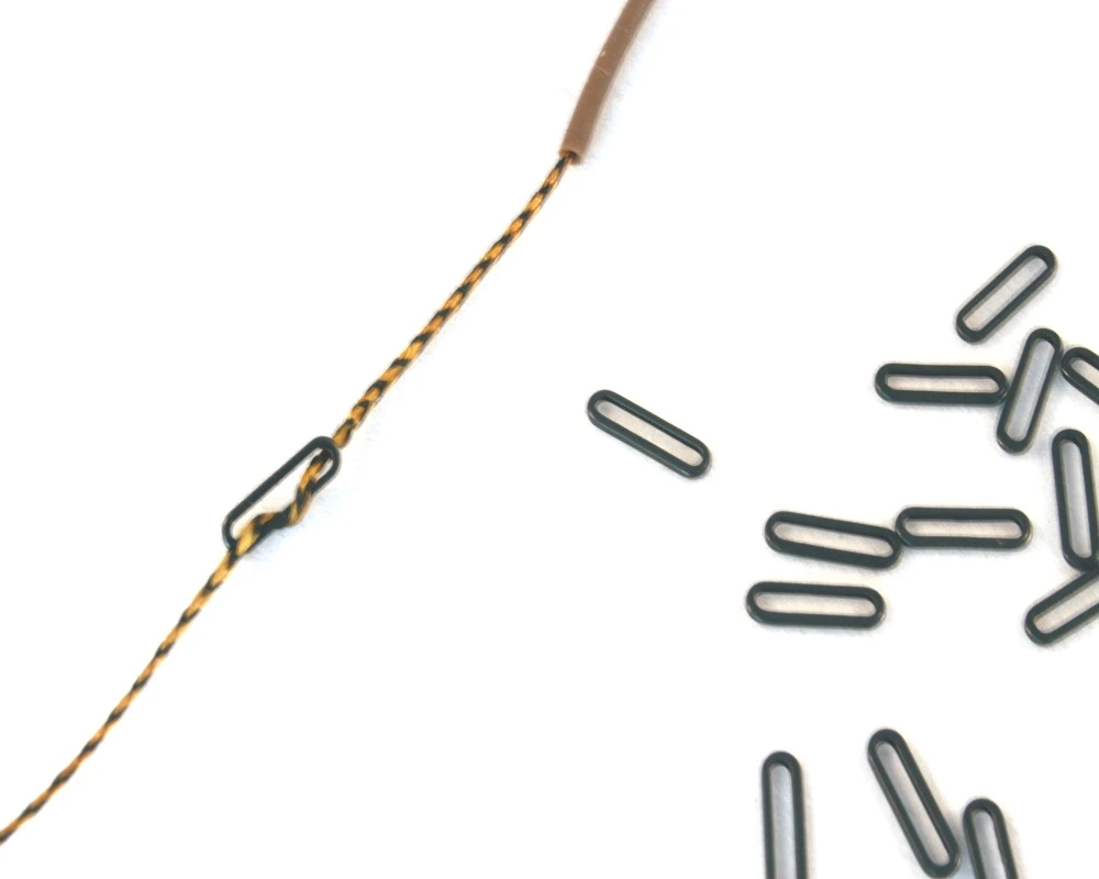 Deze Bungy Oval Rings maakt het knopen van een Bungy rig een stuk eenvoudiger. Plaats na het monteren van haak en aligner/krimpkous een Oval Ring op uw onderlijn en draai uw onderlijn twee keer door de ring. Daarna de onderlijn door het Bungy elastic halen en weer een Oval Ring monteren waar u uw onderlijn ook weer doorheen haalt. Monteer de wartel. Nu kunt u het elastiek aan beide kanten over de Oval Ring heen schuiven waardoor u het Bungy effect creëert. De Oval Rings zijn altijd te verschuiven op spanning c.q. in lengte te varieren.