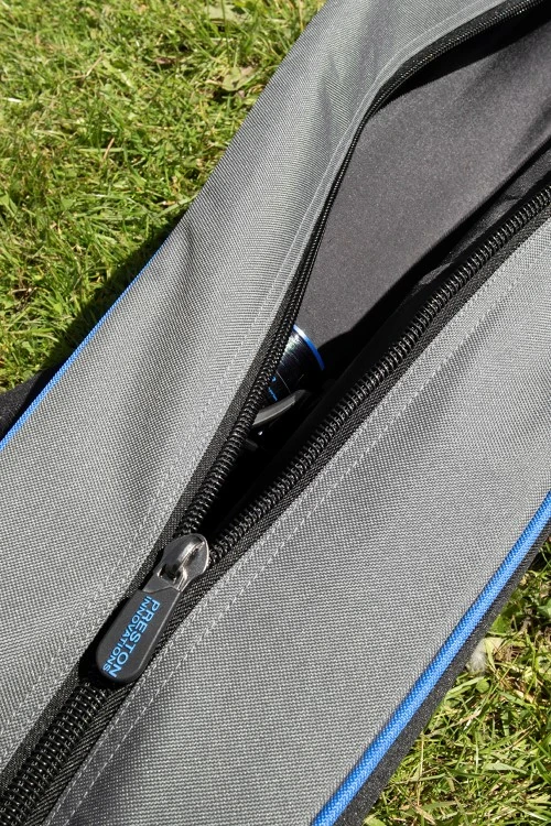Geschikt voor het opslaan van opgebouwde, tweedelige hengels tot 3,60 meter lang. Je kunt de Velcro strips binnenin gebuiken om de hengels vast te zetten. Kortere hengels kunnen van elkaar gescheiden worden door gebruik te maken van de interne verdelers, die ontworpen zijn om voor meer ruimte rond de werpmolens te zorgen. De werpmolens worden door aparte compatimenten en een centrale verdeler van elkaar gescheiden tijdens het vervoer.