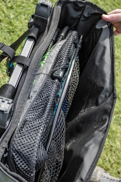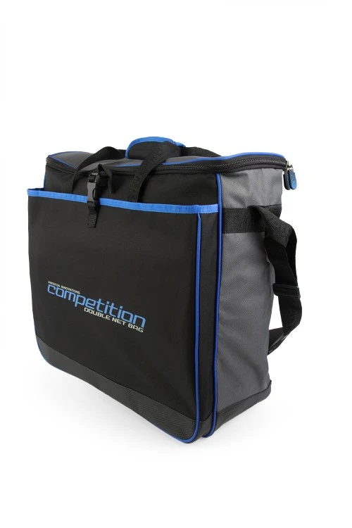 De Competition Double Net Bag heeft een afgesloten compartiment dat compleet waterdicht is, dit compartiment biedt gemakkelijk ruimte aan twee leefnetten, samen met meerdere landingsnetten. Een vak aan de voorzijde completeert de tas, hierin kunnen aastafels of hengelhouders opgeborgen worden.