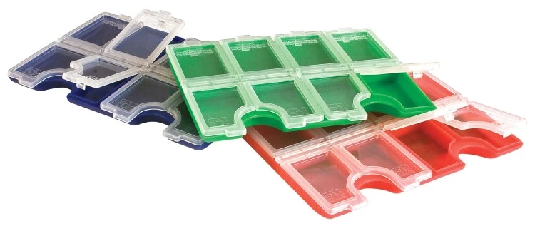 Een hakendoos met 8 afzonderlijk te openen vakken.