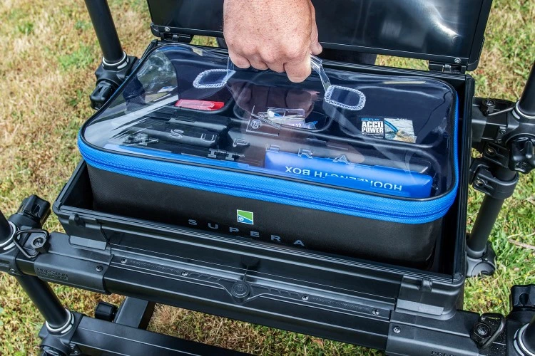 Een uniek ontworpen opslagsysteem voor aas dat het mogelijk maakt om meerdere aasdozen of kleine artikelen veilig naar je stek te vervoeren. Gefabriceerd van sterk, duurzaam en 100% waterdicht EVA-materiaal, het systeem is ook voorzien van een doorzichtige plastic deksel met rits voor een gemakkelijk openen. Ontworpen om optimaal in de basis van de Inception Seatbox te passen.