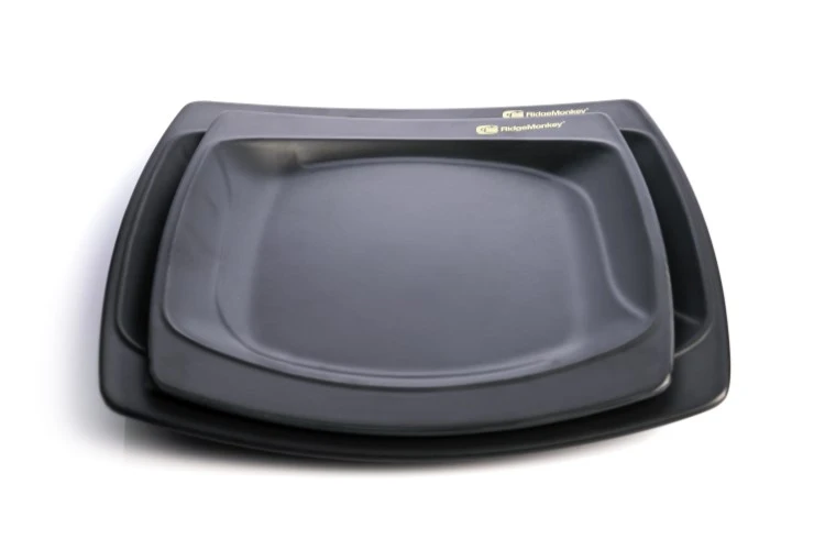 De RidgeMonkey SQ DLX borden zijn ontworpen om het leven in de vrije natuur te weerstaan. Dieze borden zijn gemaakt van slijtvast melamine en zijn gemakkelijk schoon te maken, op te bergen en mee te nemen voor buitenactiviteiten zoals vissen, kamperen, wandelen of zelfs voor gebruik in de tuin. De set bestaat uit 1x SQ DLX standard of large bord, 1x volledig RVS bestekset met neopreen etui en een 100% katoenen handdoek.