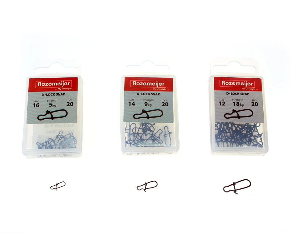 Topkwaliteit d-lock snaps. Verkrijgbaar in de treksterktes 5, 9 en 18 kg. Speel op safe, en neem ze van Rozemeijer. Ze stellen niemand teleur! 20 stuks in een handig opbergdoosje.