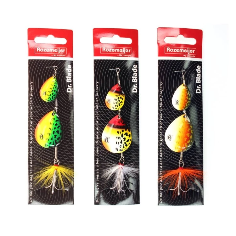 Spinners, je hebt ze met enkel blad maar soms zijn 2 bladen gewoon net even beter! In een troebele poldersloot of op een grote plas zorgt deze tandem voor veel vibratie zodat de snoek wordt getriggerd om te komen kijken. De Dr. Blade Tandem #3 & #5 heeft zich al ruimschoots bewezen, dit wordt een absolute topper! Te verkrijgen in 3 schitterende kleuren: Speckled Fire Tiger (SFT) / Speckled Red Head (SRH) / Speckled Hot Pike (SHP). Deze spinners wegen 10 gram.