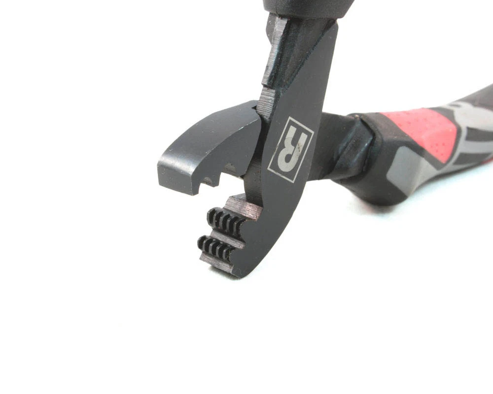 Deze tang is voorzien van een vario-bek. Er kunnen namelijk meerdere maten sleeves stevig worden dichtgeknepen. Sleeve in de bek van de tang en knijpen. Door het profiel in de bek van de tang wordt de boel veilig, solide en zonder beschadiging goed vast geknepen. Wie ‘m gebruikt heeft, is overtuigd!