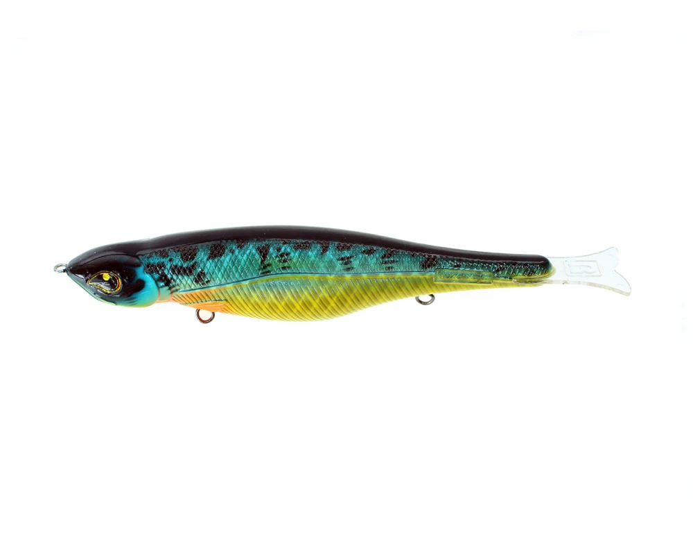 Een jerkbait die “glide”?……zeker! De Tracker glijdt netjes, is zeer langzaam te vissen waardoor je roofvis echt kan “triggeren” om toe te slaan. Deze drijvende jerkbait met ratel is heerlijk om te gooien. Niet te zwaar, niet te licht. De staart zorgt ervoor dat de Tracker zelfs bij de juiste tik weer van je af wil “zwemmen”, kortom er worden halve cirkels gemaakt van links naar rechts. Vis de Tracker met een lichte leader en hij glide lang door, vis ‘m met een zwaardere leader en de Tracker glijdt iets minder maar kantelt weer meer. Voorzien van 360RSHS bevestiging van de dreggen en een mooie “brede”buik die voor een goed silhouet vormt in het water. Snoek kan ‘m niet weerstaan!