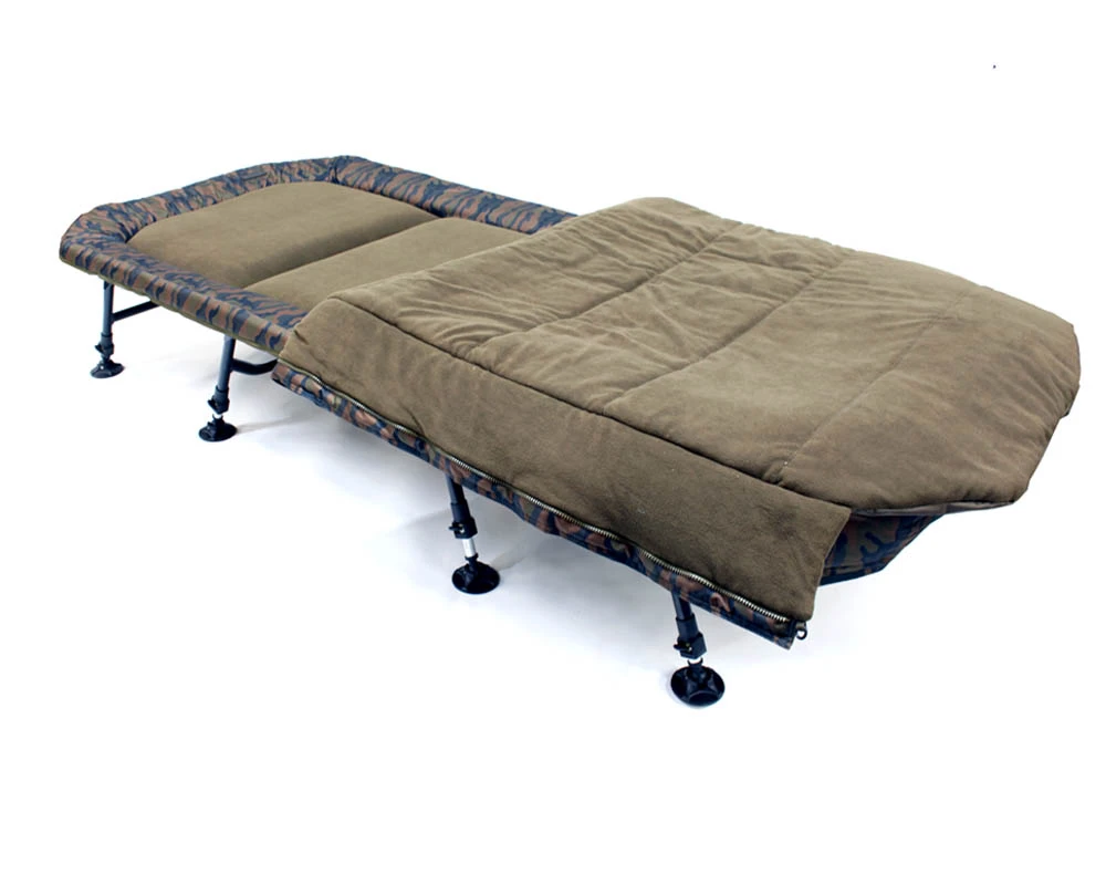 Deze bedchair is wat breder en langer dan het gemiddelde bed. Tevens zit er een soort deken aangeritst. Hierdoor ontstaat een compleet systeem waarbij geen slaapzak meer nodig is. Het grote voordeel van een sleepingsystem. De aangeritste “slaapzak” is volledig afritsbaar waardoor het bed ook als normaal bed te gebruiken is. Het SKILLS Sleeping System is voorzien van 8 stuks traploos verstelbare poten en zeer eenvoudig dubbel te klappen voor transport. Met z’n fleece binnenzijde, lekker comfortabel en warm.