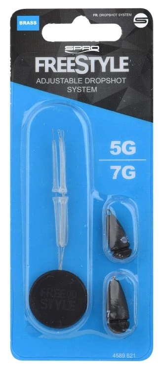 De dropshot rig, herontworpen. Ons verstelbare dropshot systeem ( DS system ) stelt je in staat om direct de positie van de kunstaas te verstellen en dus in diepte te varieren tijdens het vissen. Het systeem bestaat uit 3 transparante stopper kits en 2 messing gewichtjes. De Freestyle Adjustable Dropshot Rig kan gemonteerd worden zonder moeilijke knopen. De haak kan vastgeklemd worden tussen de transarante stoppers of met wat meer onderlinge ruimte worden gebruikt voor meer vrije beweging van je kunstaas.